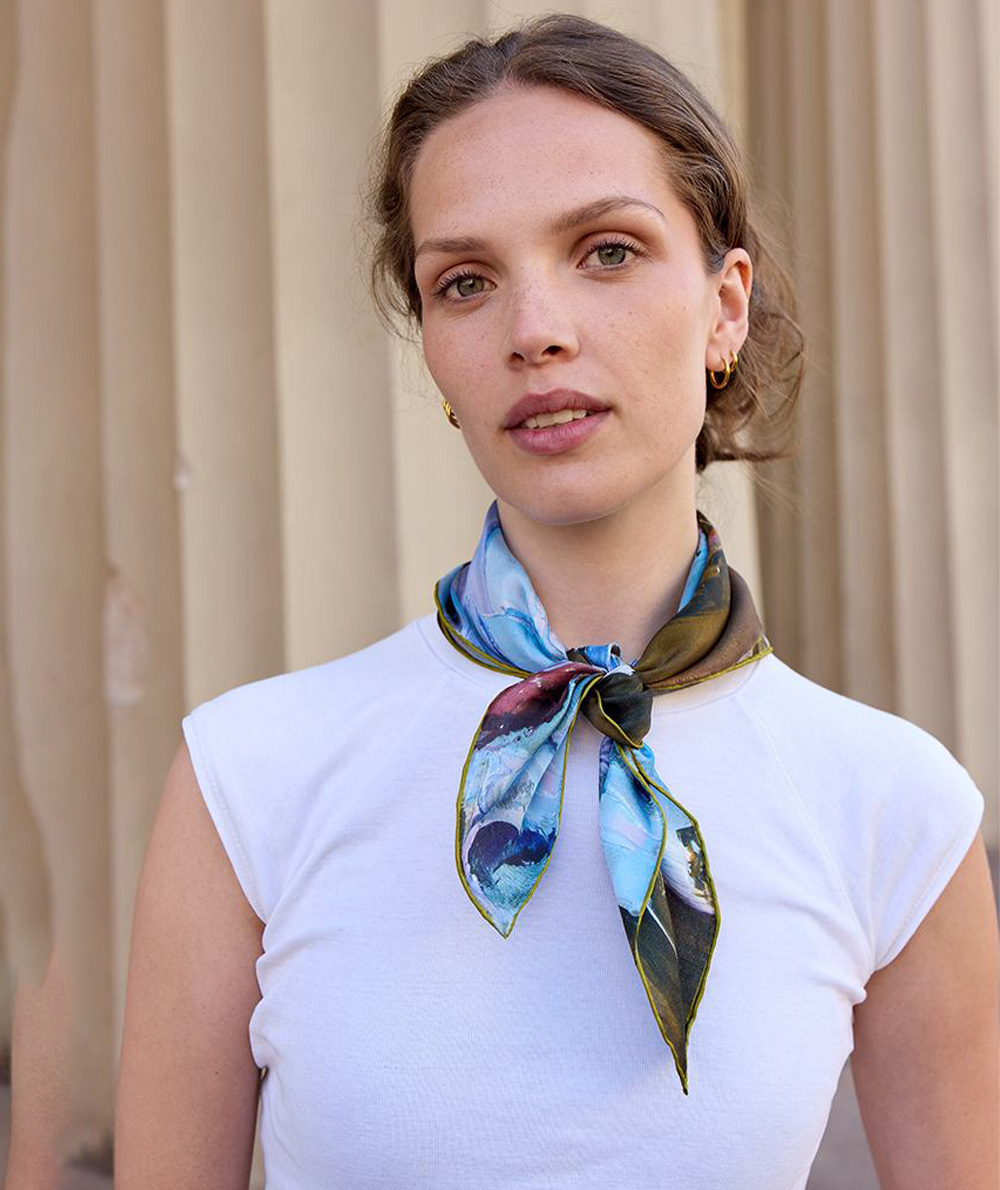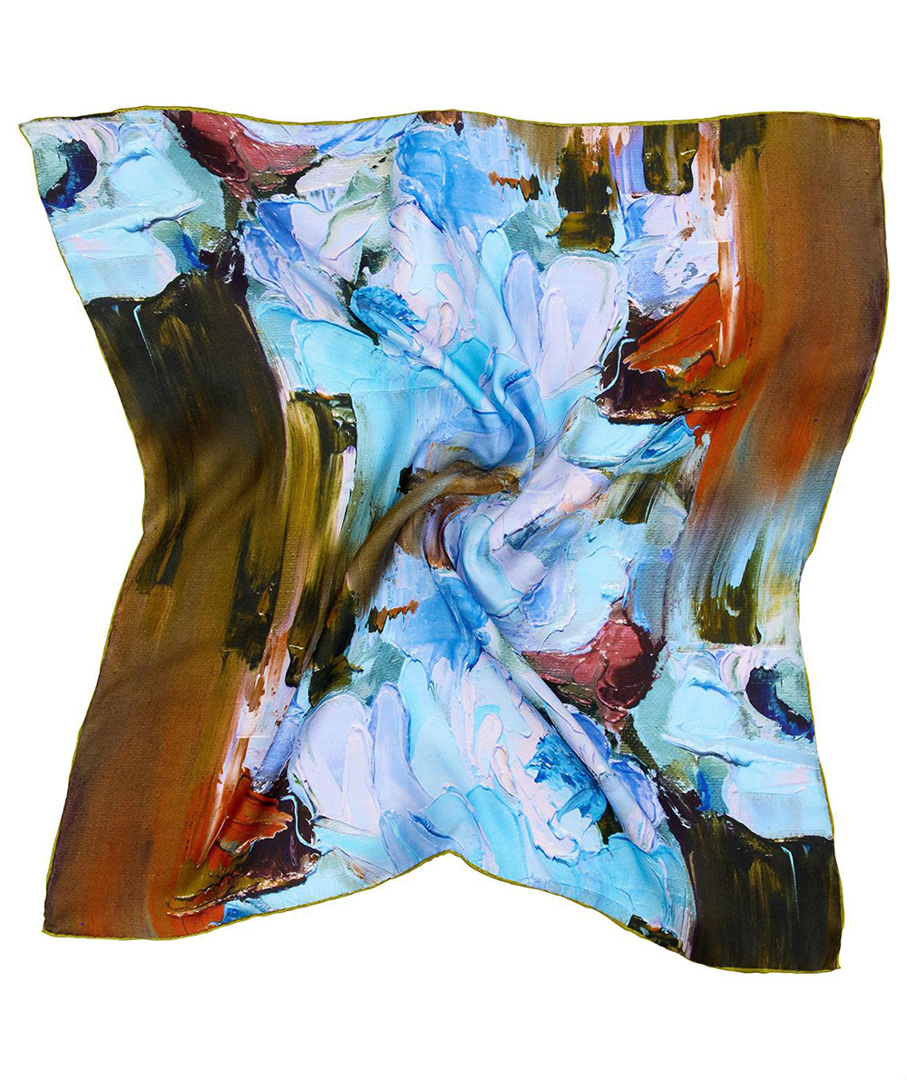 Small square silk scarf with large abstract roses painted with a brush. Many styling options.