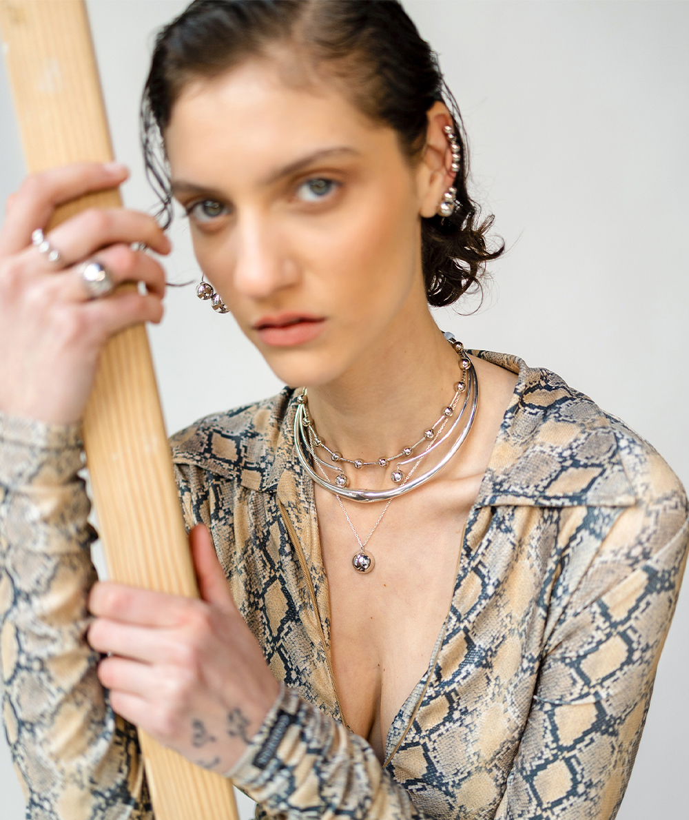 Bubble single line has a minimal aesthetic with a combination of multiple spherical earrings
