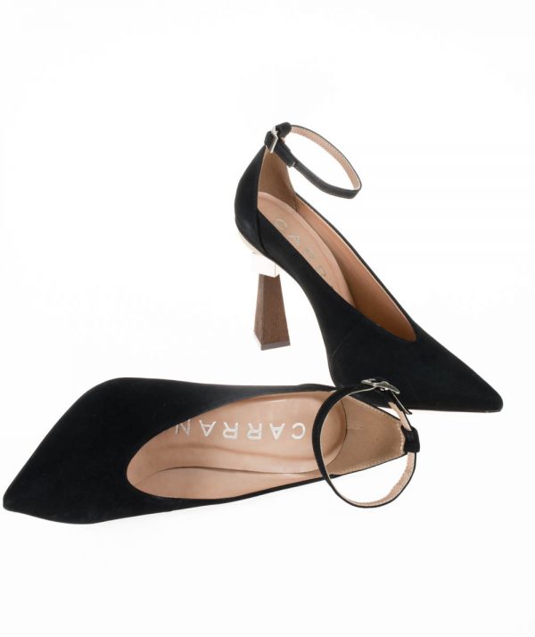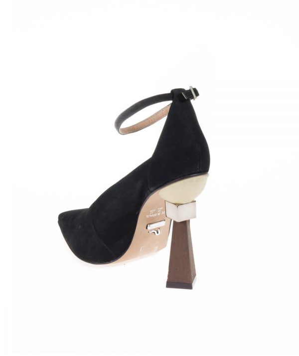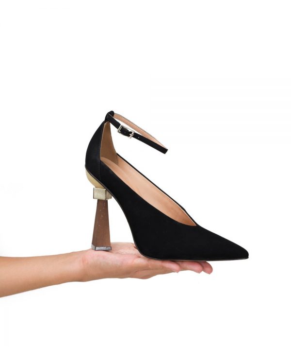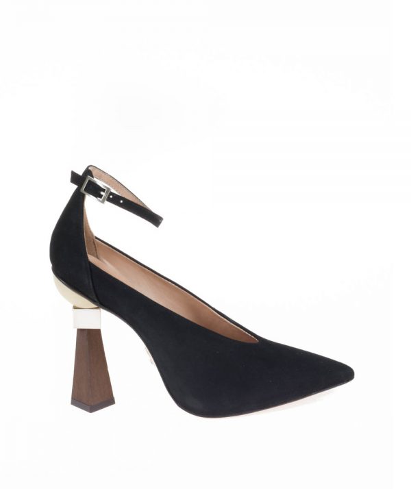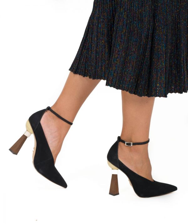 Carrano suede heels with a geometric wooden heel and pointed toe