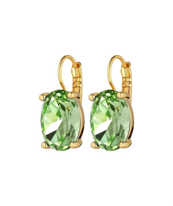 - Chantal is a French hook earring created in polished brass with a prong set ovale facetted sparkling crystal and polished and plated finish
