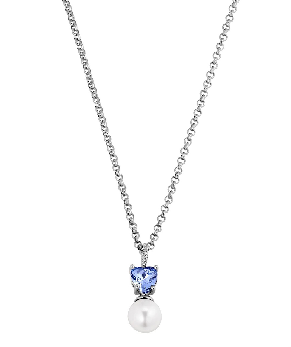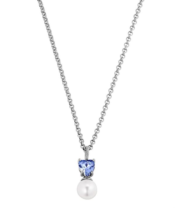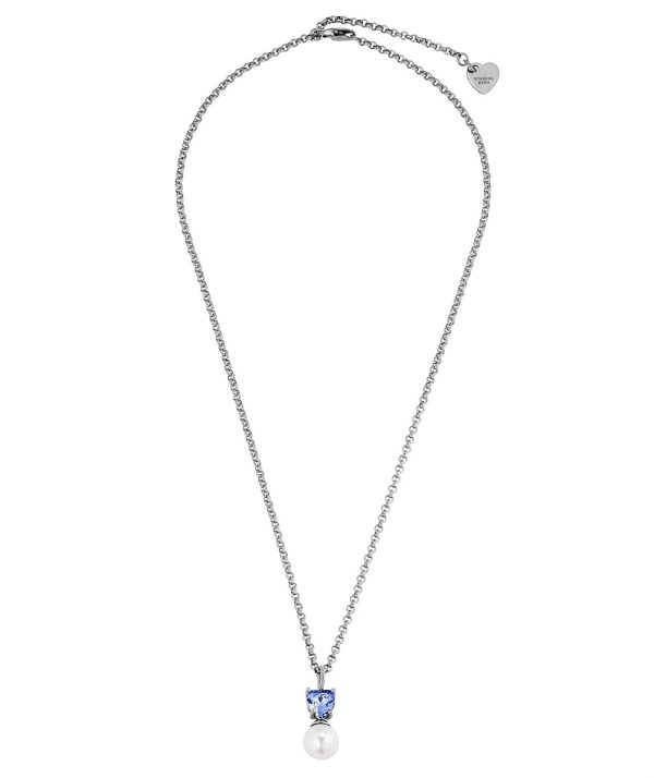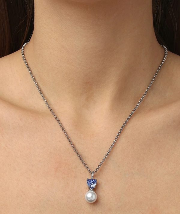 - COLUME – an elegant chain made with a prong- set heartshaped crystal pendant topping a round white imitation pearl