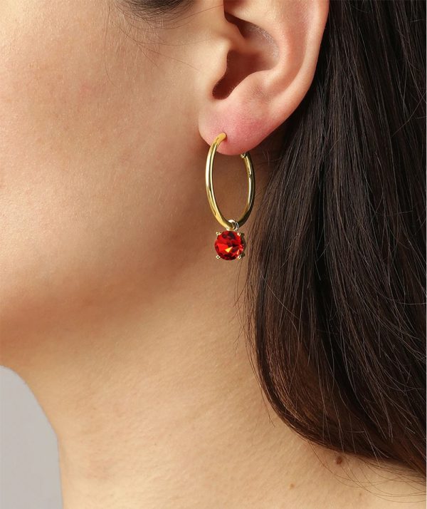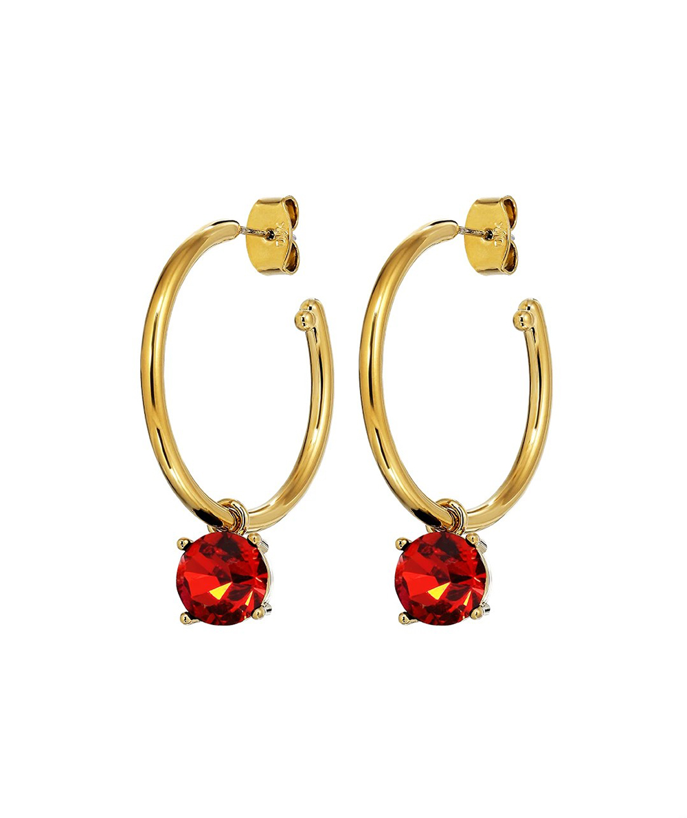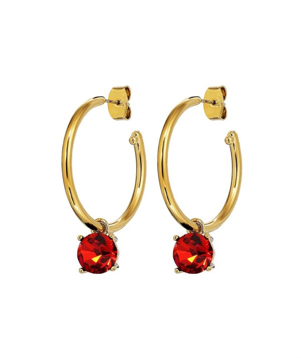 - DIEGA – cool and timeless plated large hoop created in a shiny finish with a detachable pendant featuring a large solitaire facet cut crystal set in a light setting.