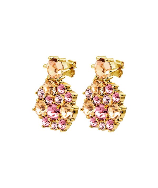 - FREESIA – is a an elegant and unusual stud post party earring, designed mith multible smaller and larger round facet cut crystal chatons, asymmetrically set in a round pattern