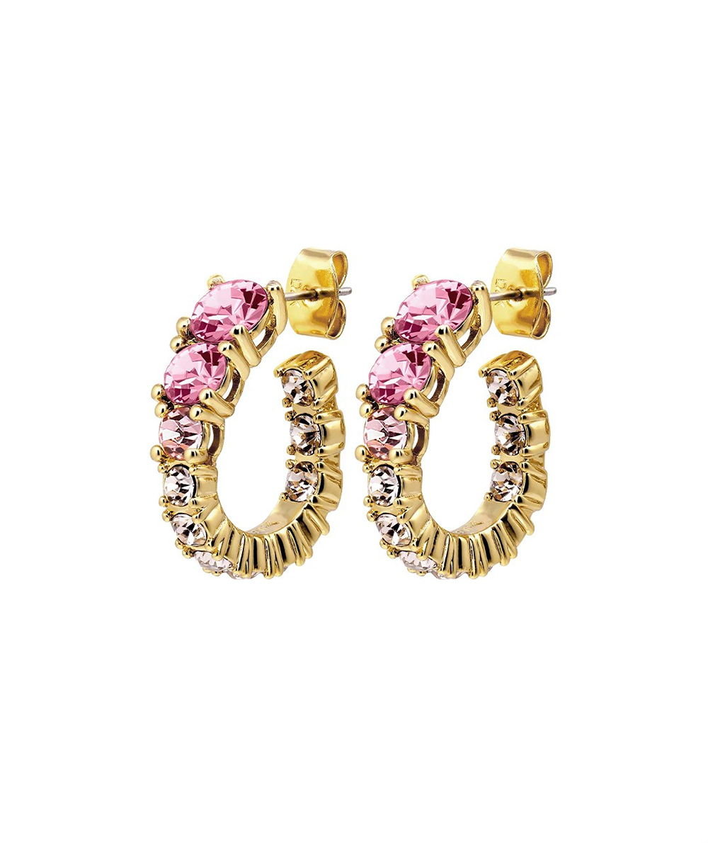 - KOLOS – an U – shaped crystal hoop, set with multible round facet cut crystals. Crystals are graded in sizes