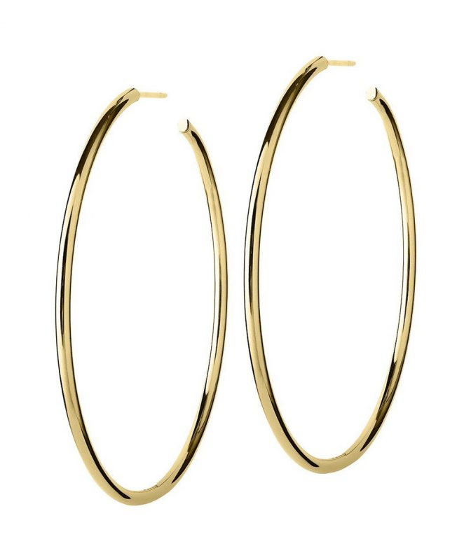 Eye-catching Barre is poetry in motion, inspired by the bar in a dance studio. With swelling round shapes, bold chains and decorated with playfully scattered sparkling stones. The larger hoops, seen here in 14K gold plating, add an eye-catching detail to the ear that catches the light