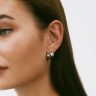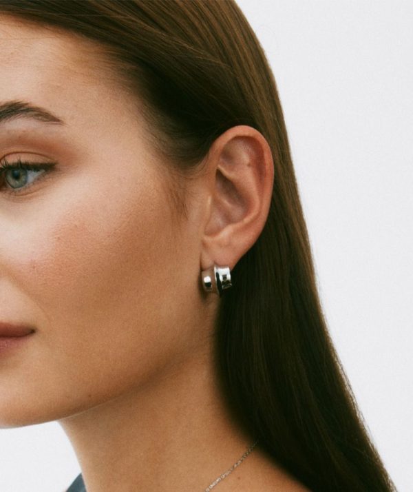 Eye-catching Barre is poetry in motion, inspired by the bar in a dance studio. With swelling round shapes, bold chains and decorated with playfully scattered sparkling stones. The smaller hoops, seen here in shiny stainless steel