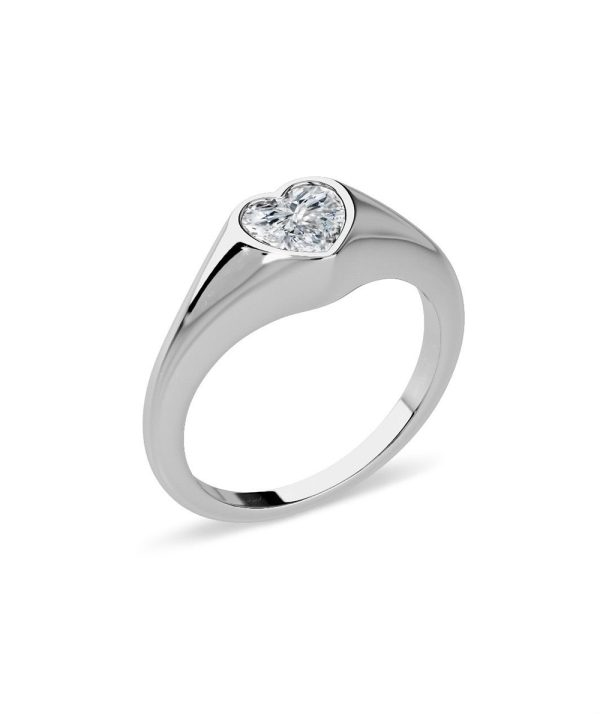 The Bel line features a heart in the form of a sparkling stone. This ring is a stylish signet ring which can be worn on any finger. Bel ring can be seen here in shiny stainless steel.