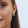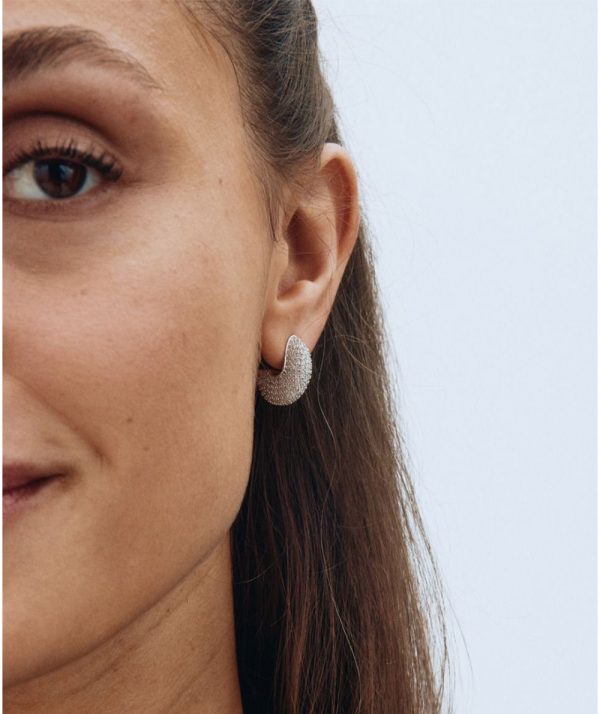 Both timeless and fashionable, the luxurious Bisque Pavé is crafted in sterling silver. The hoop embodies the series’ swelling round shape, decorated fully with glittering stones, fitted tightly around the earlobe