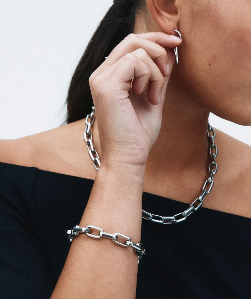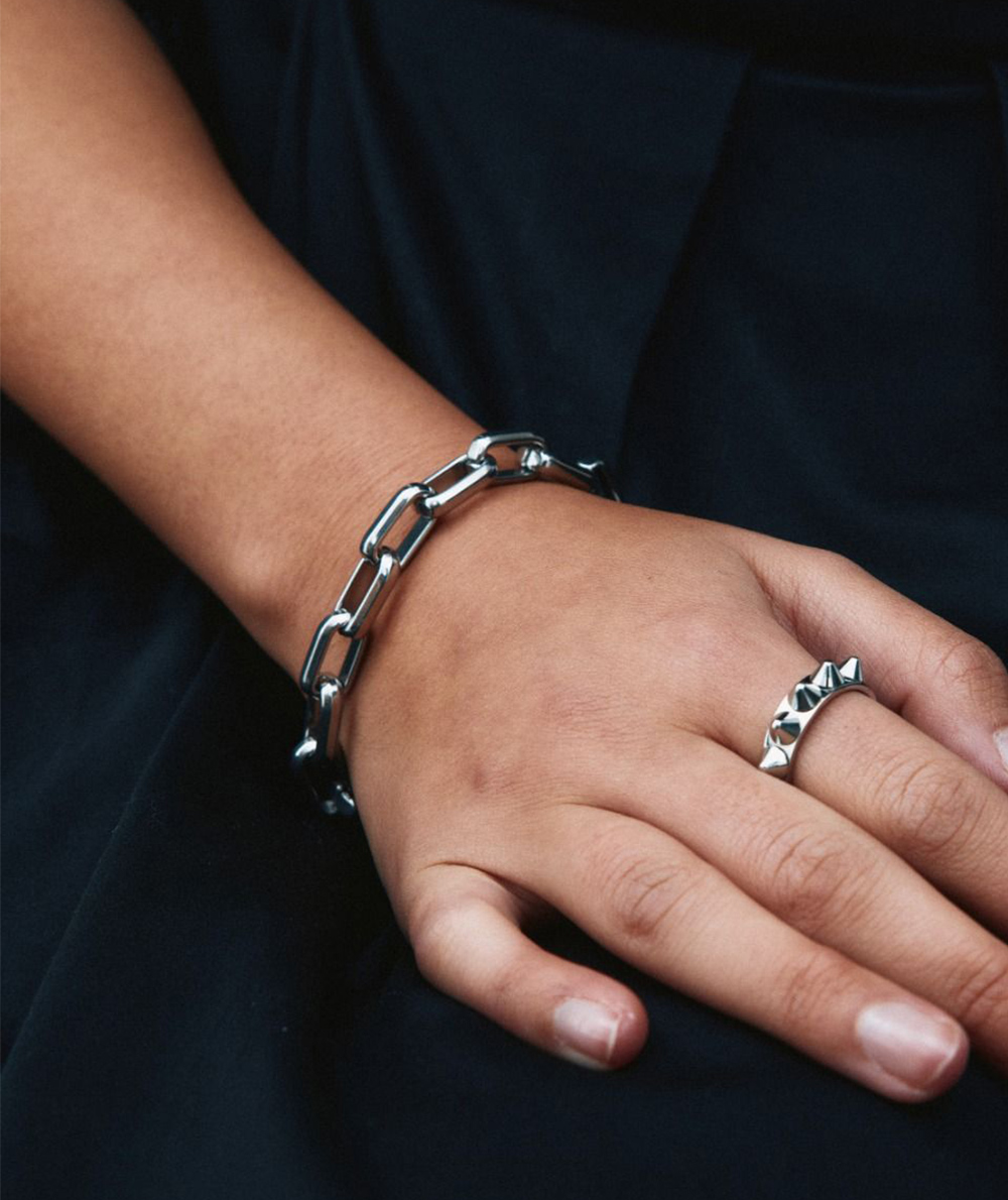 The Box Chain Maxi combines the chunky trend with popular layering in this bold stainless steel bracelet