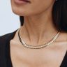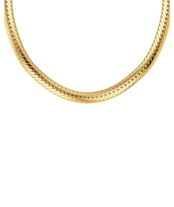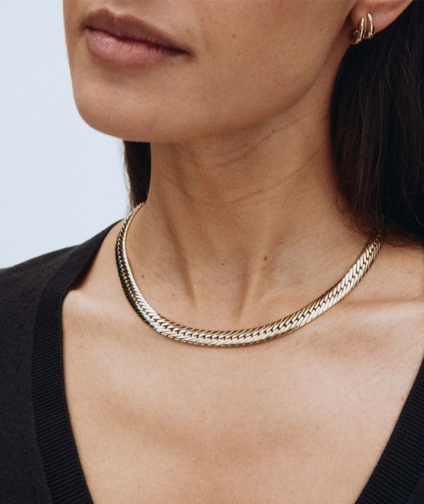 Hera is a re-imagining of the classic herringbone chain using a brand new pattern. Here in a necklace in 14K gold plating