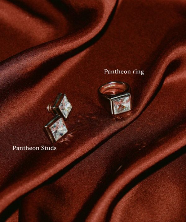 The shimmering Pantheon is inspired by the roof of the famous ancient building of the same name. A bold party design, both glittering and daring. Seen here in a shiny stainless steel ring