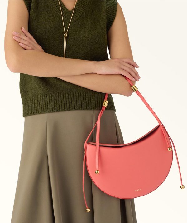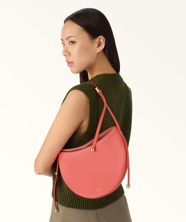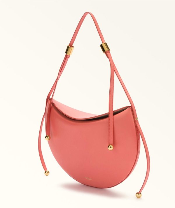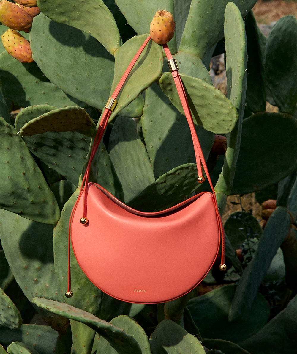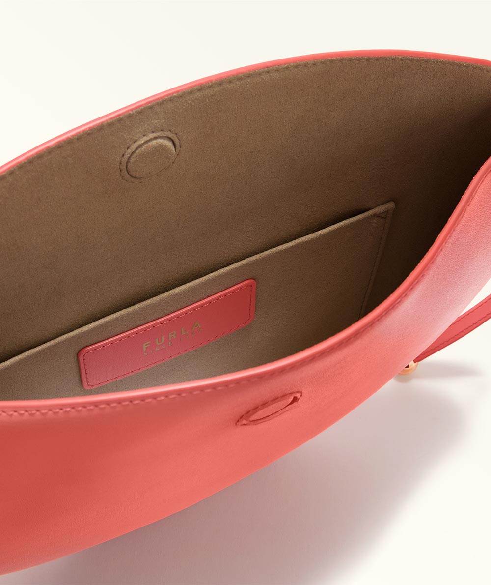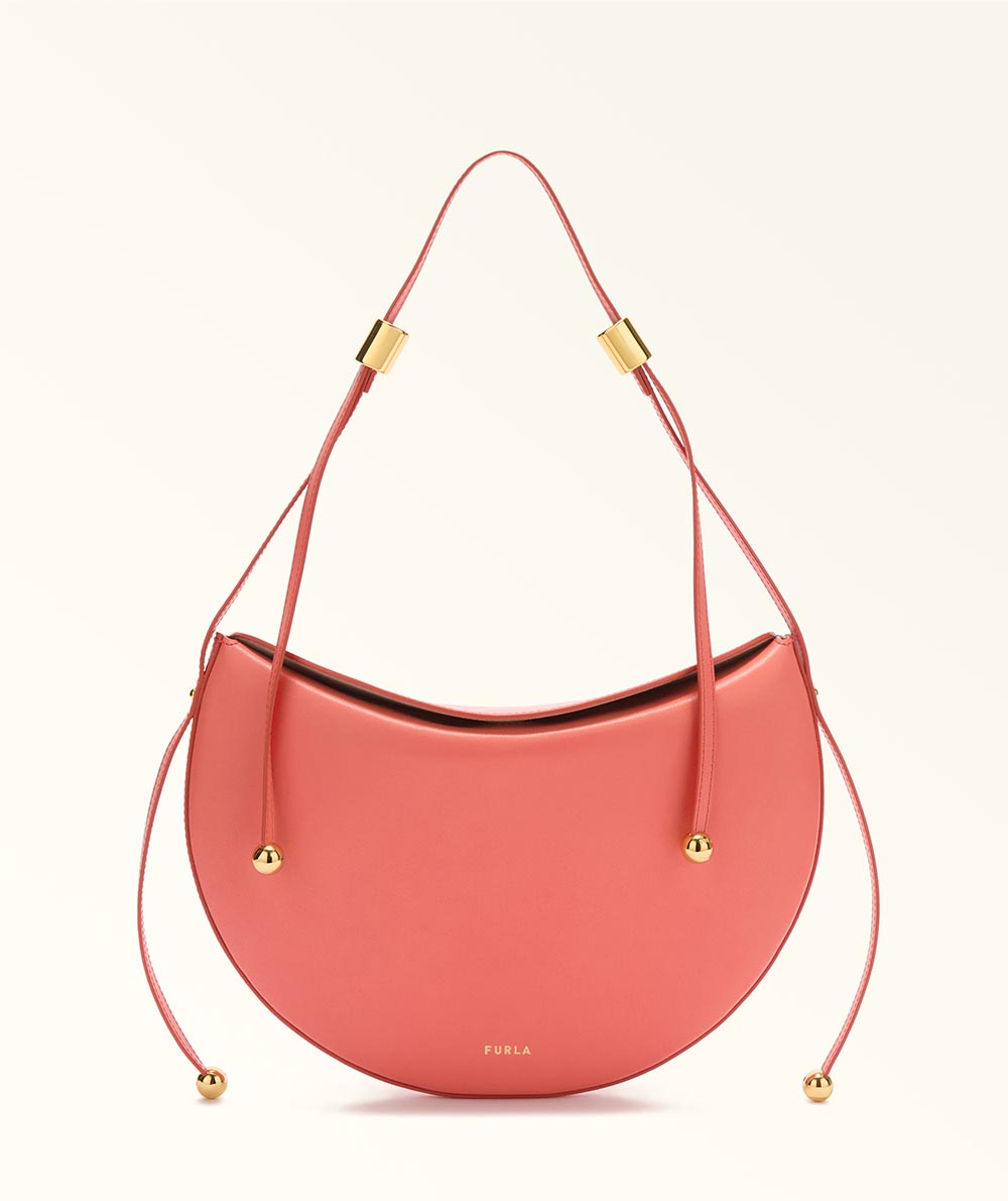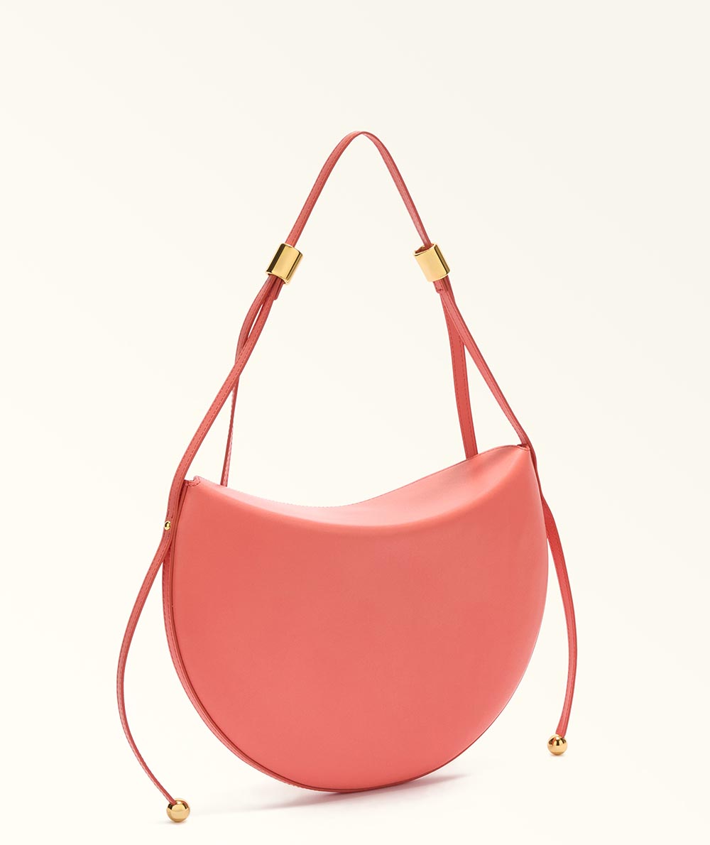 The Furla Moonstone shoulder bag has a contemporary saddle silhouette, its calfskin leather design elevated by clean and rounded lines