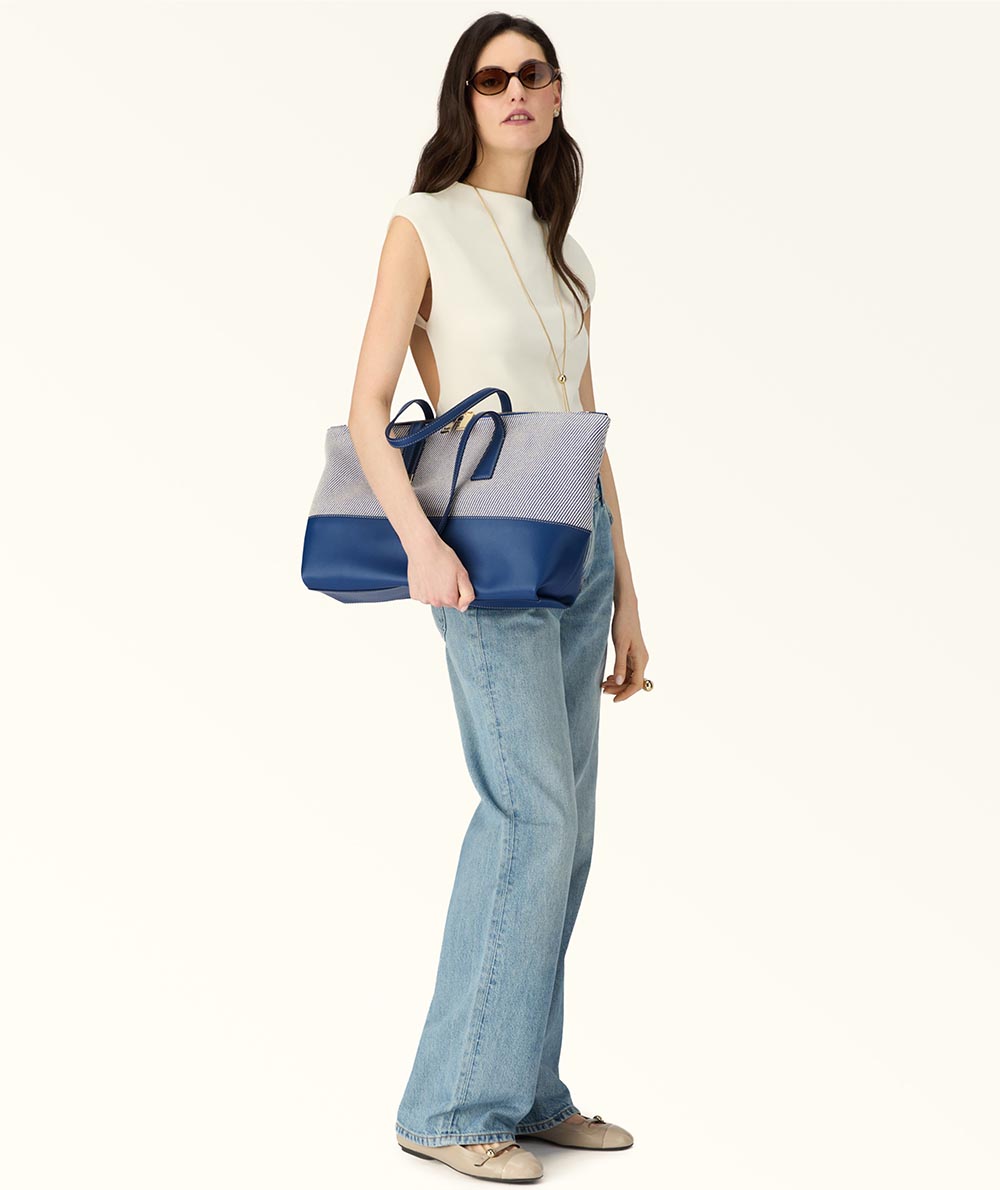 The Furla Olivia tote bag is practical and elegant. Made from a special summer canvas with leather details