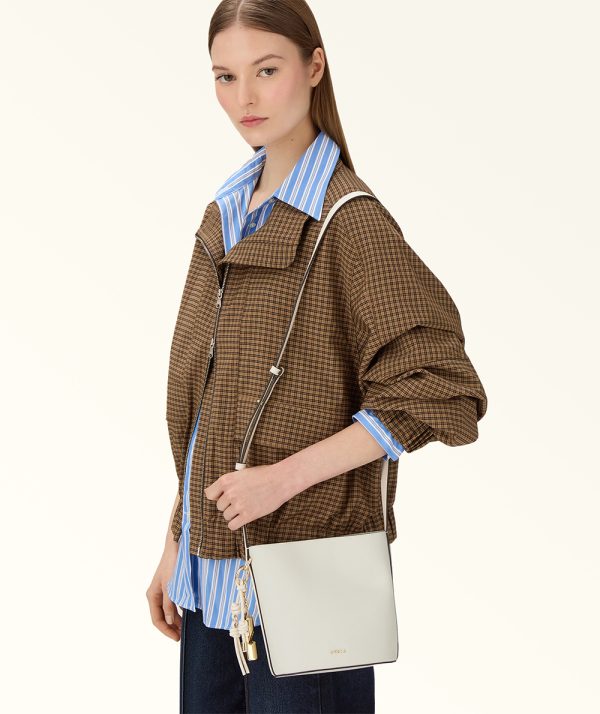 Furla Roxie is the perfect mini bucket bag for keeping your essentials close. Featuring a soft and flexible base, its structured design is elevated by precious leather with a printed finish