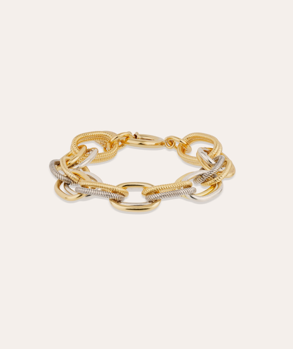 - Bicolor bracelet with smooth and grooved rings, meticulously assembled by hand
