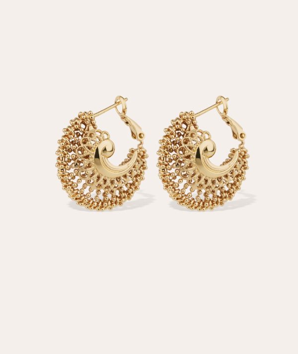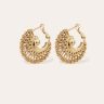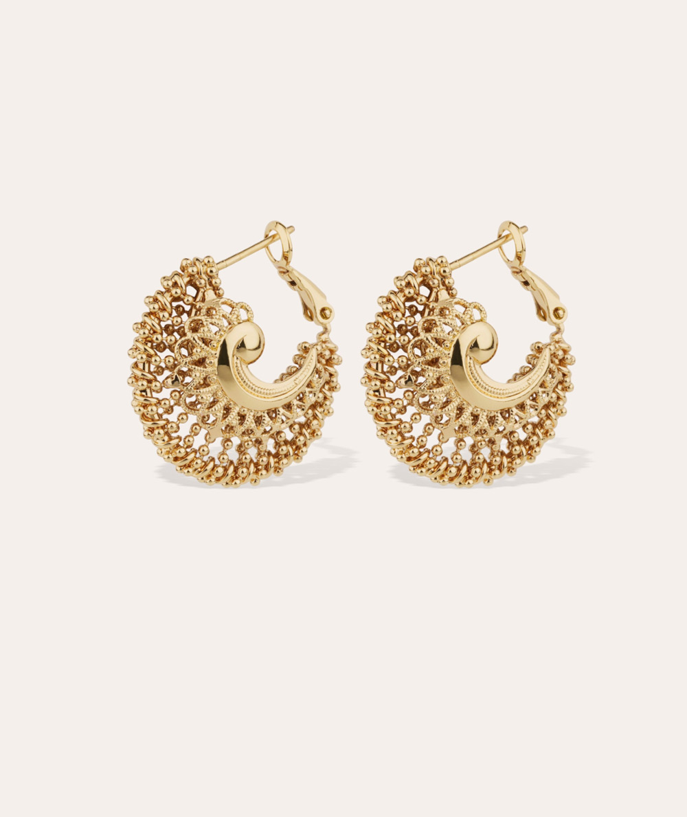 - Gold plated hoop earrings composed of a base made of threads and gold plated beads