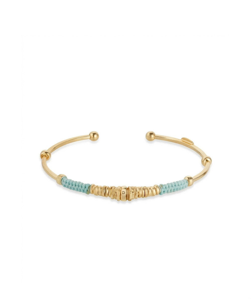 An icon of Gas Bijoux, this fine gold-plated bracelet is partially wrapped with colorful threads and adorned with vintage-inspired rings, accumulated like a treasure. Designed as a lucky charm, it can be worn alone or stacked
