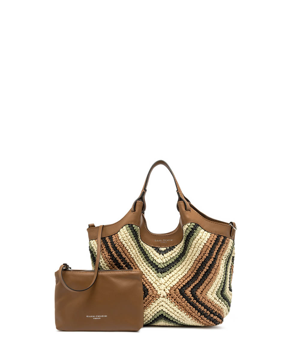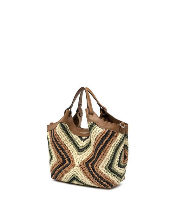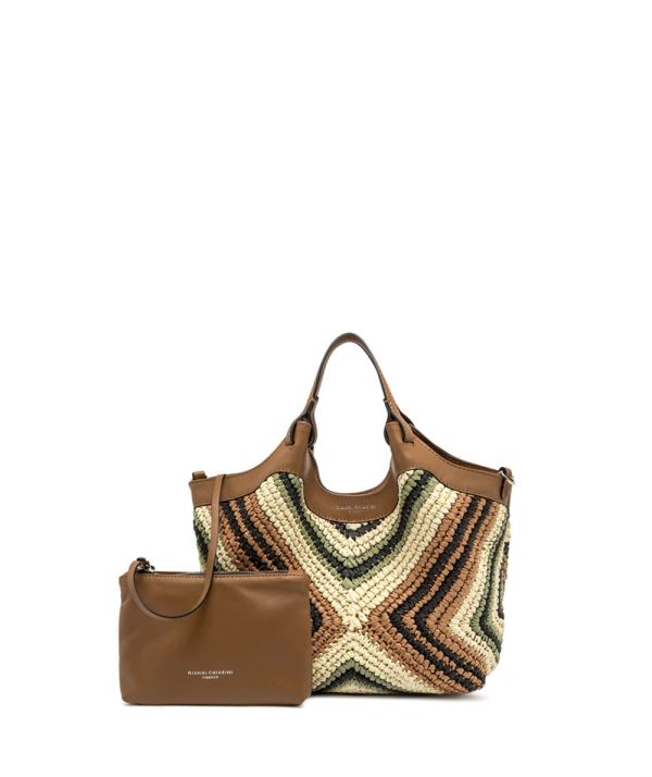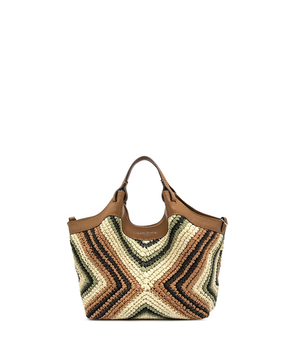The iconic Dua bag, crafted from woven straw, stands out for its unique texture with: