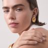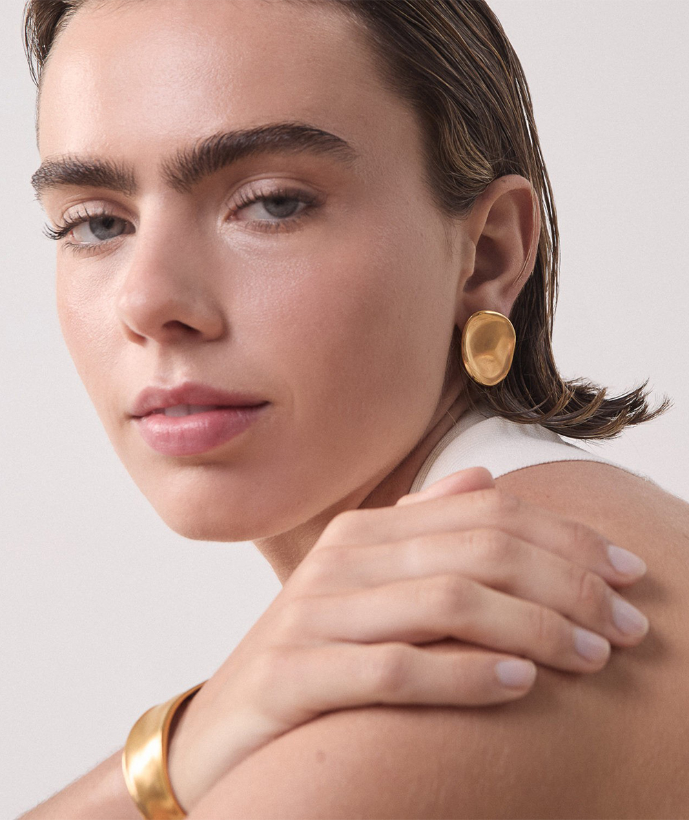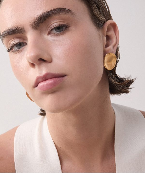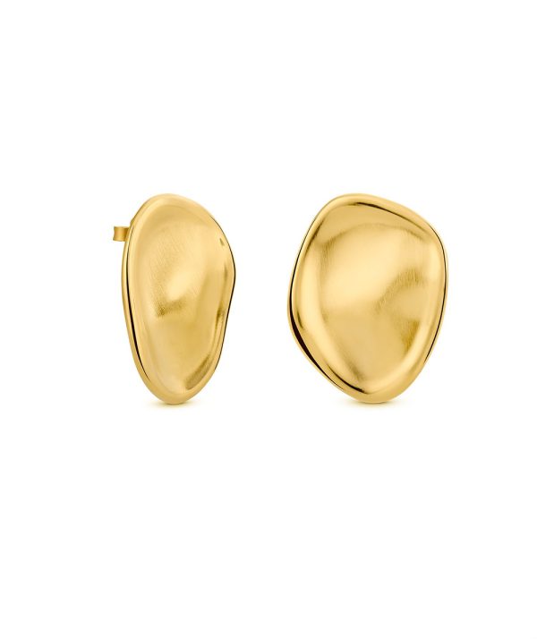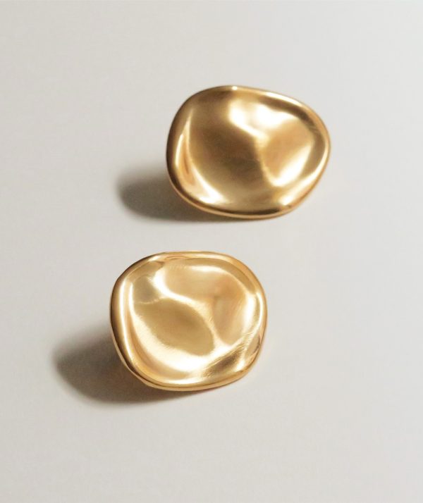 Large golden stud earrings with soft shapes and subtle contrasts inspired by the coves of the Costa Brava