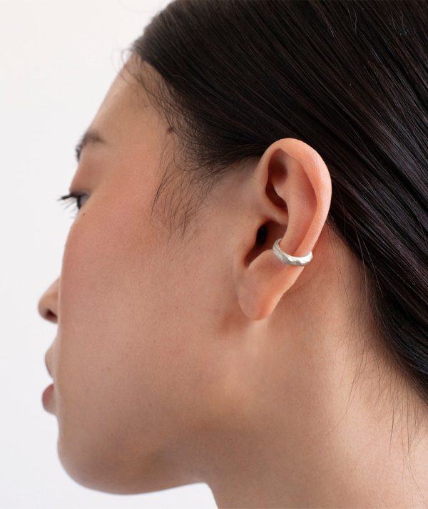 Ear cuff earring with sinuous shapes. Soft, voluminous design inspired by the trunks of the cork oak tree when stripped of its cork