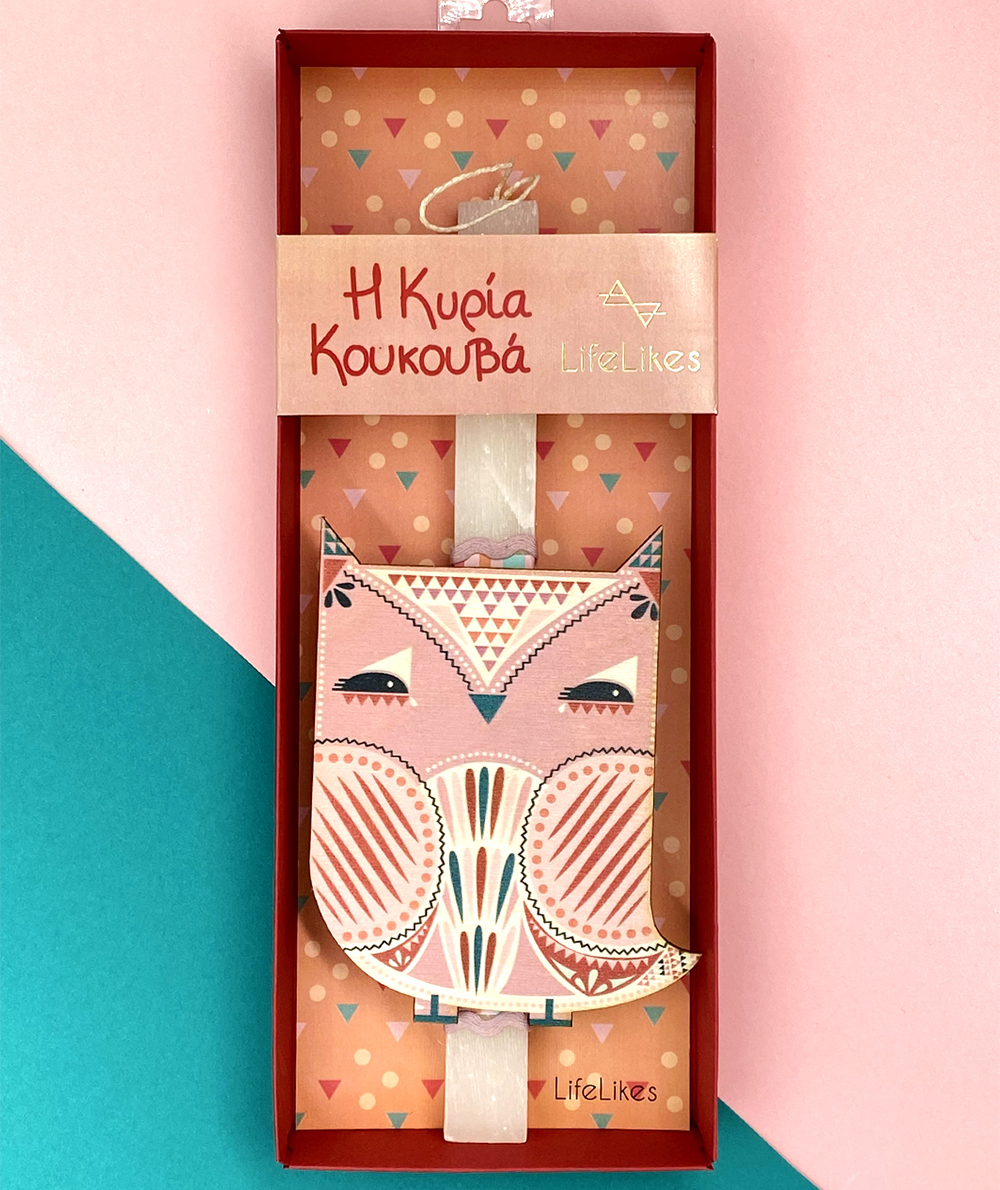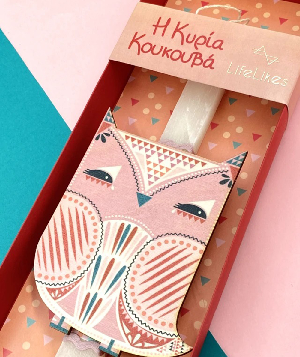 Χειροποίητη αρωματική λαμπάδα Lifelikes με χρωματιστή φιγούρα ξύλινης κουκουβάγιας. Αποτελείται από λευκό κερί, με τη χαριτωμένη κουκουβάγια να τη διακοσμεί, η οποία στη συνέχεια μπορεί να ξεκρεμαστεί και να κολληθεί οπουδήποτε επιθυμούν τα παιδιά, μιας και είναι μαγνητάκι