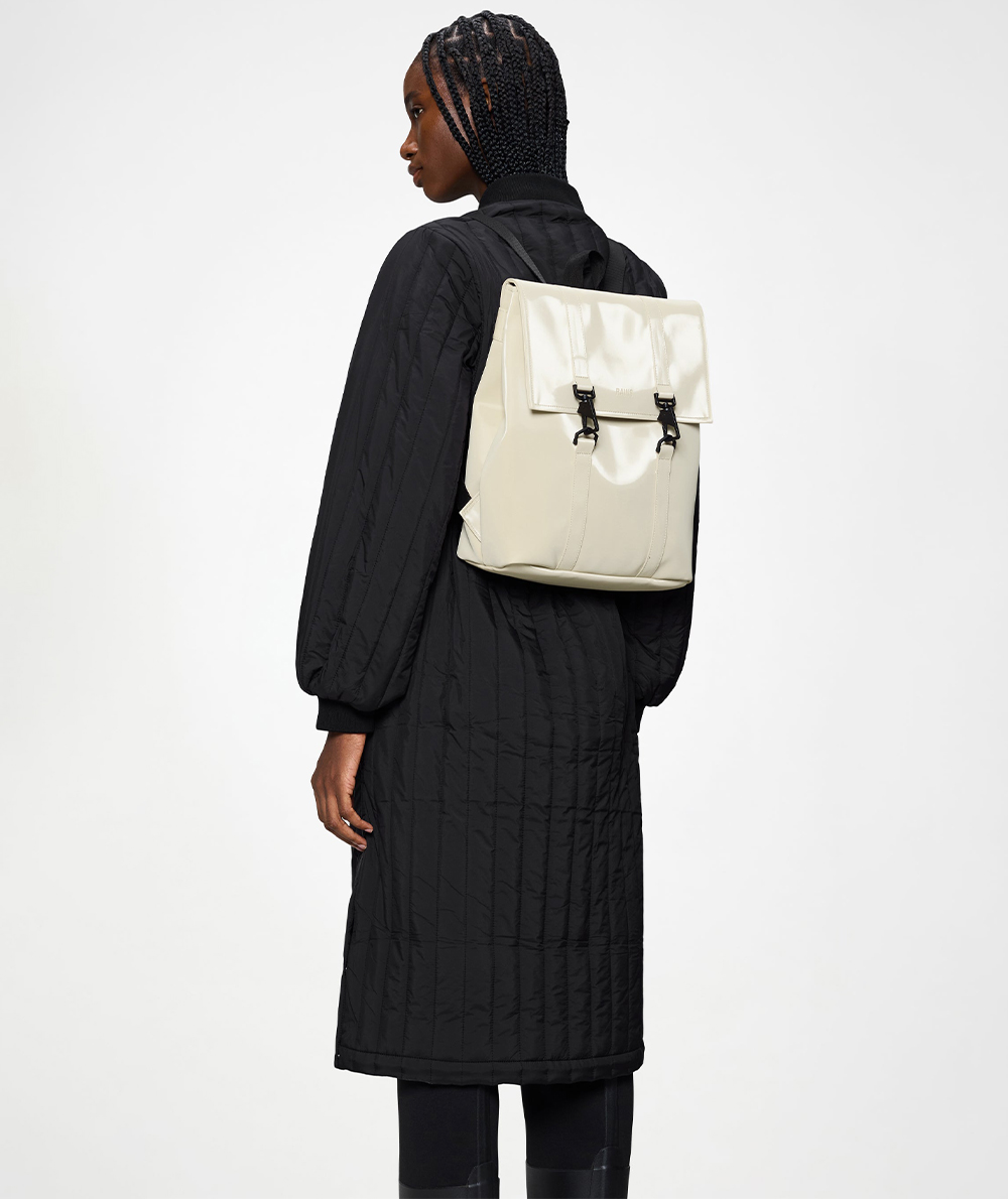 MSN Bag Mini is a downscaled version of Rains’ MSN Bag. Characterized by a minimalistic silhouette and flap with carabiner closure