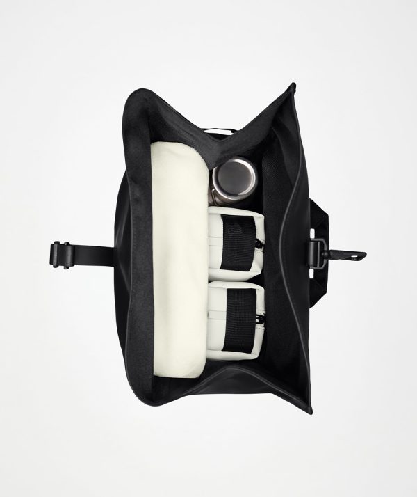 - Rolltop opening with snap compression and carabiner closure