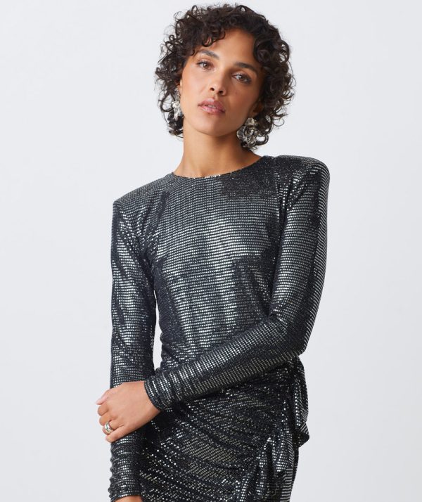 - Composition: 60% Polyester / 35% Metallic yarn / 5% Elastane