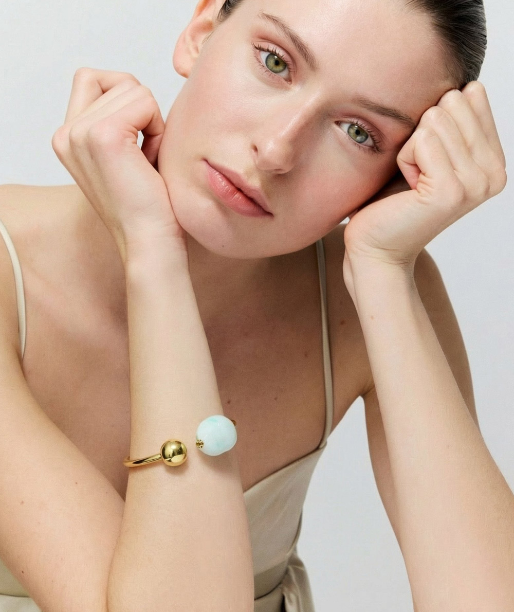 Pearl Bangle bangle cloud marble by Vanessa Baroni is part of the iconic Signature line and combines modern designer jewelry design with a striking design language. The cloud marble color scheme underlines the expressive character of the design and makes this bracelet a stylish statement piece