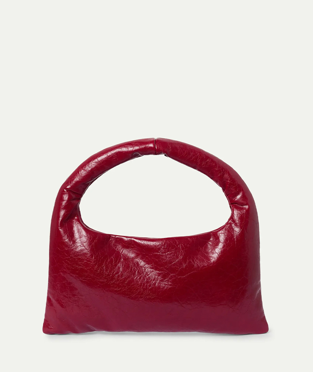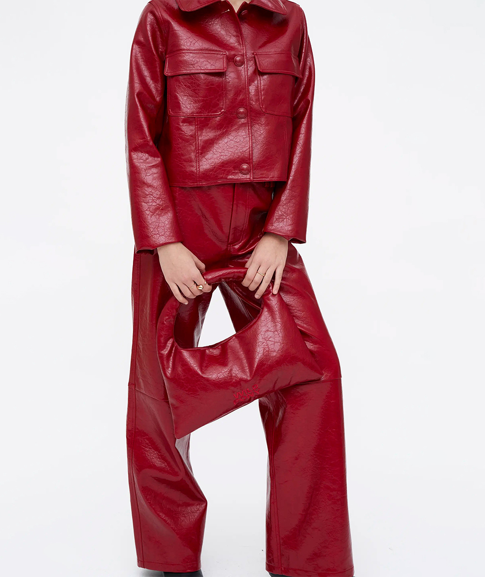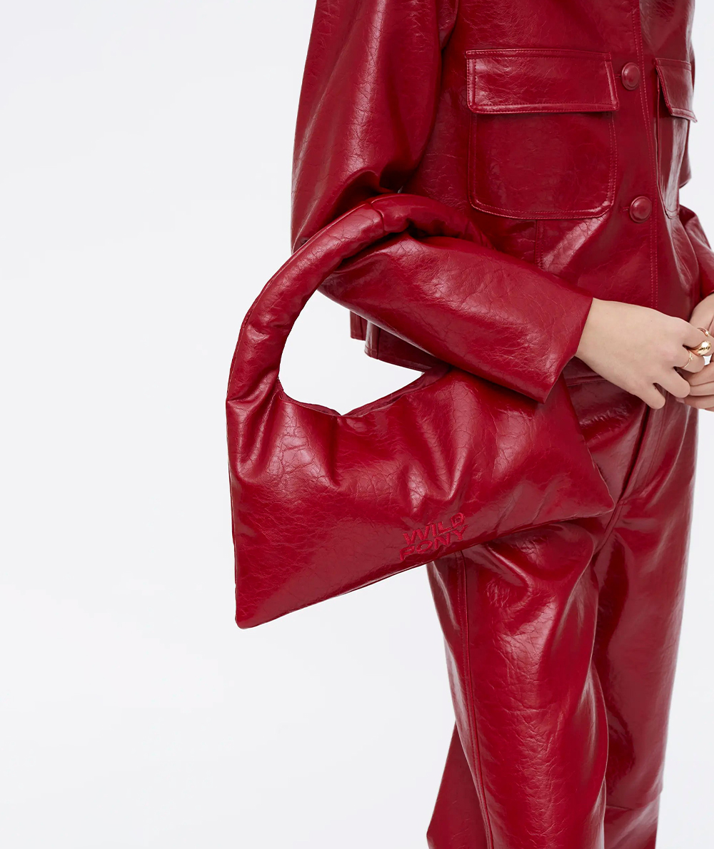 Shoulder bag in red leather-effect fabric with: